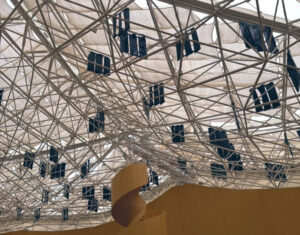 One symbolic example was the “Sorais” solar-powered bench, designed using reused solar panels. The bench provided lighting and device charging while offering visitors a comfortable place to rest, showing how solar energy can blend into urban furniture and contribute to circular design. Cutting-edge perovskite solar cells and the “Sorais” solar-powered bench—made from reused solar panels—were integrated seamlessly into the Expo grounds. “Sorais” repurposes decommissioned modules into a functional public bench that provides lighting and device charging while offering visitors a comfortable place to rest.