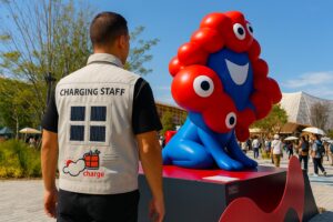 Among the many technologies presented, renewable energy solutions played a central role throughout the venue. Solar-powered installations—ranging from cutting-edge perovskite solar cells to creative reuse of decommissioned panels—were integrated into public spaces, demonstrating how clean energy can support everyday life in a natural and visually seamless way.