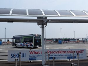 Beyond the transportation terminal, Sekisui Chemical’s perovskite solar cells were also deployed on smart poles with IoT functions, inside the Osaka Healthcare Pavilion, and on kitchen trucks throughout the Expo site. The company aims to commercialize this technology in FY2025, launch a production line with an annual capacity of approximately 100 MW in 2027, and expand to gigawatt-scale manufacturing by 2030.